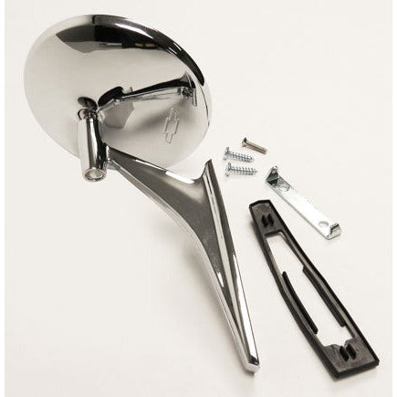 1967 Chevy Chevelle Door Mirror, w/Bowtie And Ribbed Base by Golden Star Auto. If your old Door Mirror is rusted or damaged, we are proud to offer a Golden Star Classic Auto Parts designed replacement!
